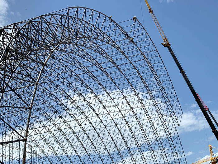 (2)网架加工前应对现场尺寸进行复测,确认无误后方可进行加工、安装;网架制作、运输、安装应遵守《空间网格结构技术规程》JGJ7-2010、《钢网架德阳螺栓球节点》JG/T 10-2009、《钢网架德阳螺栓球节点用高强度螺栓》 GB/T 16939-2016、《德阳钢结构德阳工程德阳施工规范》 GB50755-2012、《德阳钢结构德阳工程德阳施工质量验收标准》 GB50205-2020。